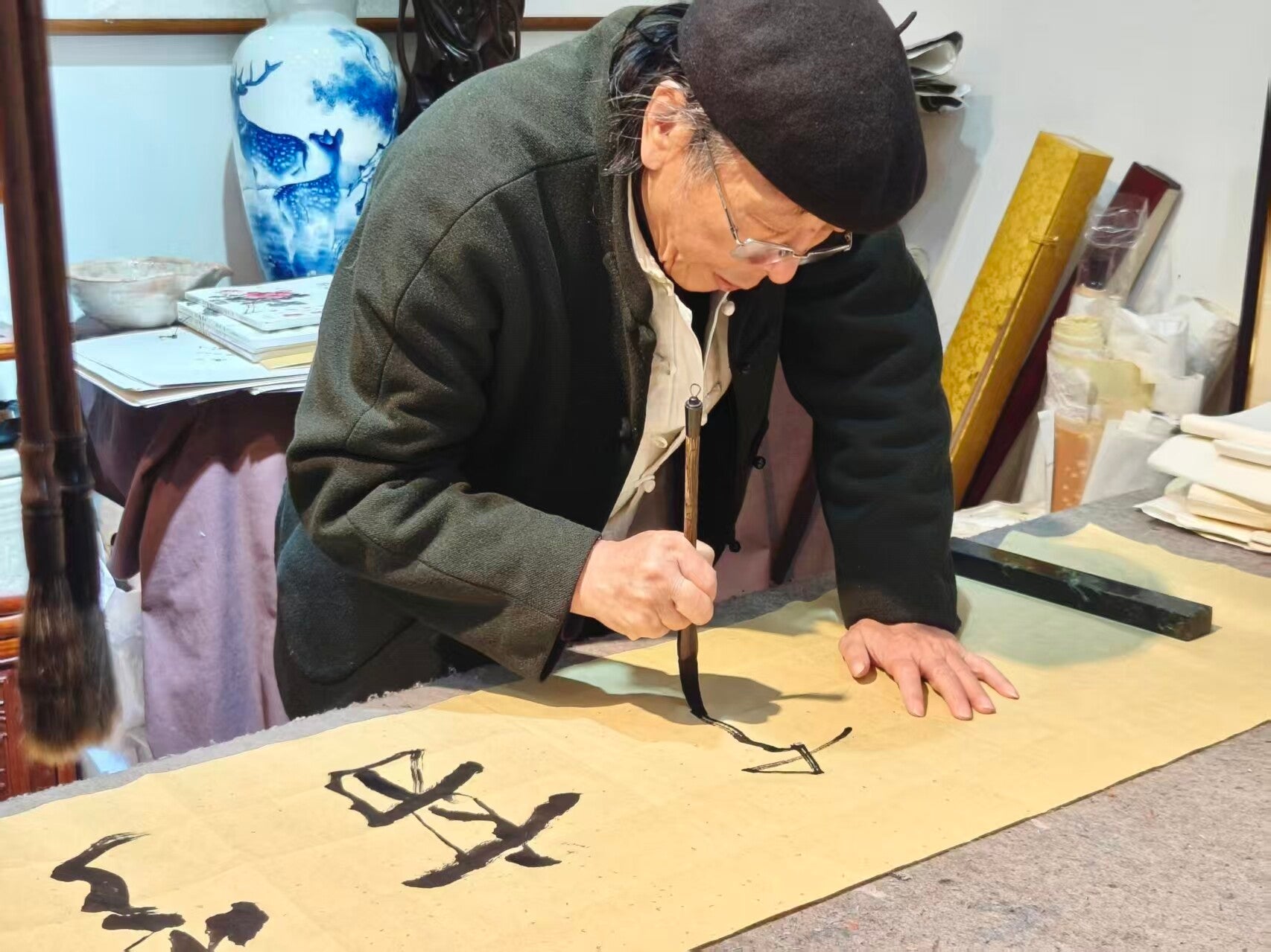 "Chacune de ses créations raconte une histoire, un voyage, un moment, un poème de sa vie. Le rencontrer est aussi une aventure, car il donne des cours de peinture et de calligraphie, permettant aux amateurs de s'initier à son art."